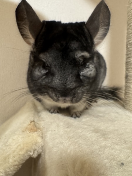 前から見ると、明らかに左目ばっかりカキカキして毛がボサボサしています。また菌にやられたかな。。