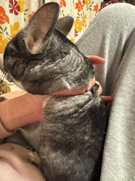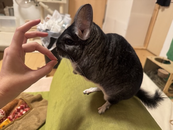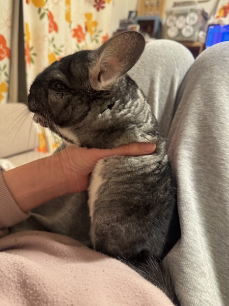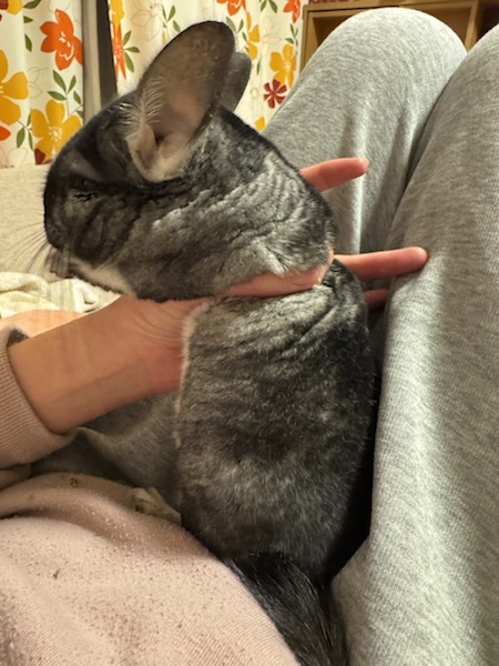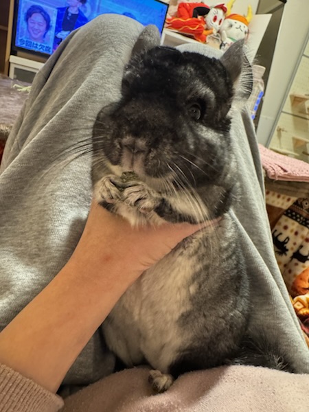 抱っこしておやつをあげてたら途中でテレビの音にビックリして暴れちゃったので、なんか変な持たれ方になったおうちゃん。