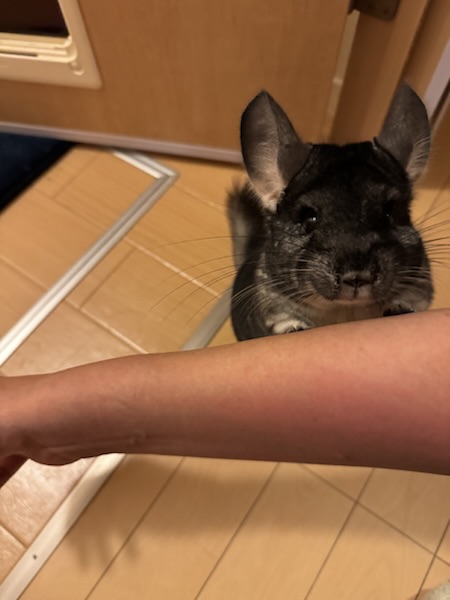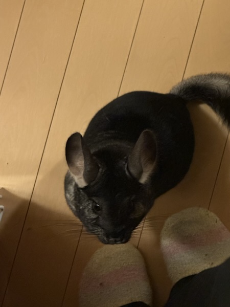 今日はどーしてもどーしても遊びたいらしく、洗面所から出てきてまで足にくっついてきました。🐭「のりたい〜」