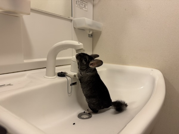 🐭「洗面台のぼってあそびたいー!のせてー!」