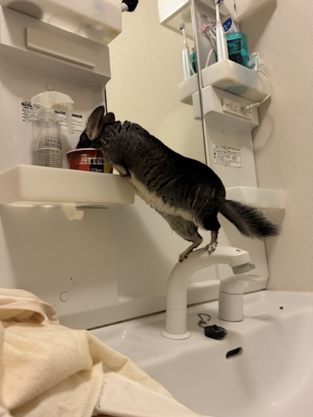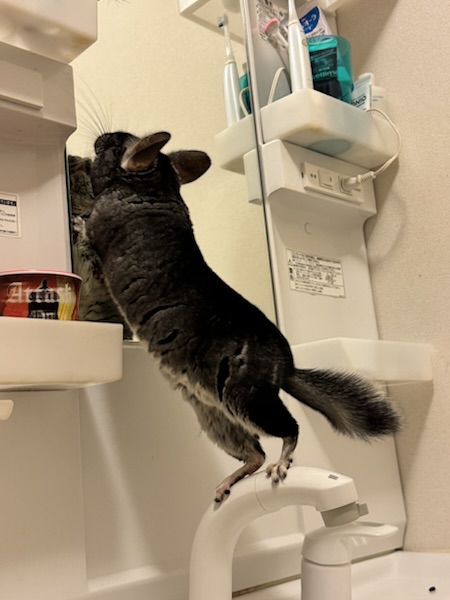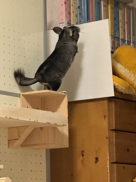 何ヶ月も何年もガン無視してた場所にある日イキナリ興味津々になるのがチンチラという生き物( ̄▽ ̄)