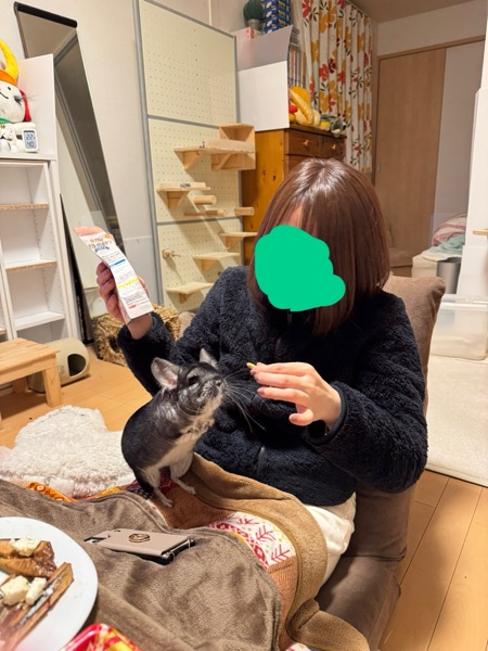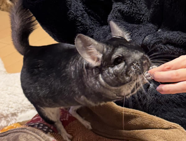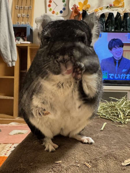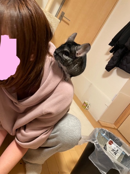 「肩に乗っているチンチラ」というものを初めて見て「かわいいいぃ」と写真を撮られまくったおうちゃん⬇︎