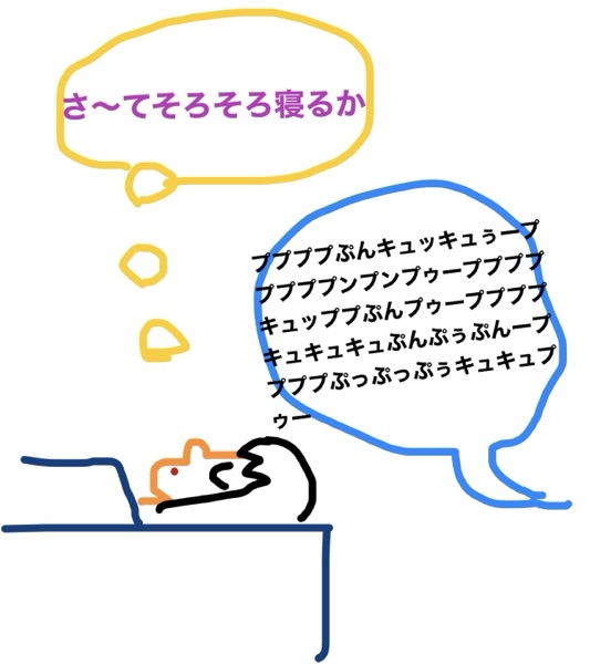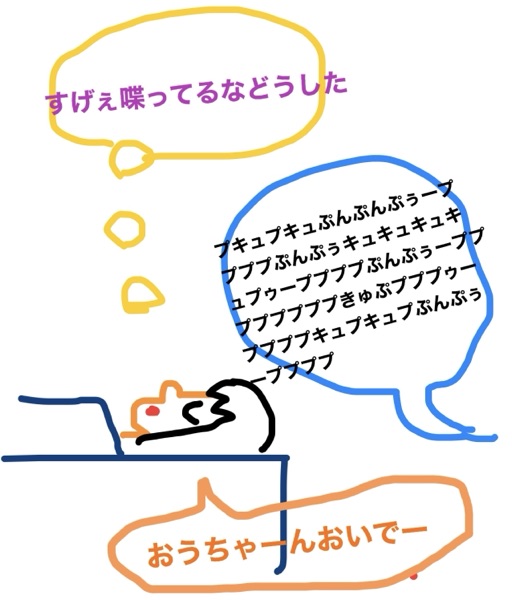 夜、布団に入って寝よーとしたら、リビングにいるおうちゃんがなんか喋りはじめました。