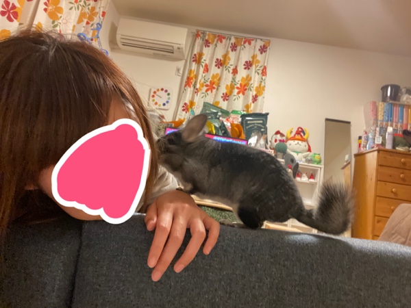 飼い主はずっとソファにいるから近くて嬉しいです*\(^o^)/*