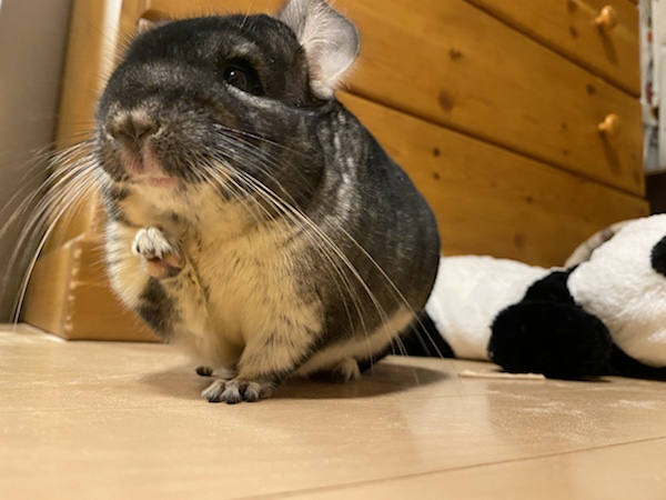 おうちゃんがポケーとしてるので「フフフ。。写真でも撮ってやろう。。!」と絡みに行く飼い主。